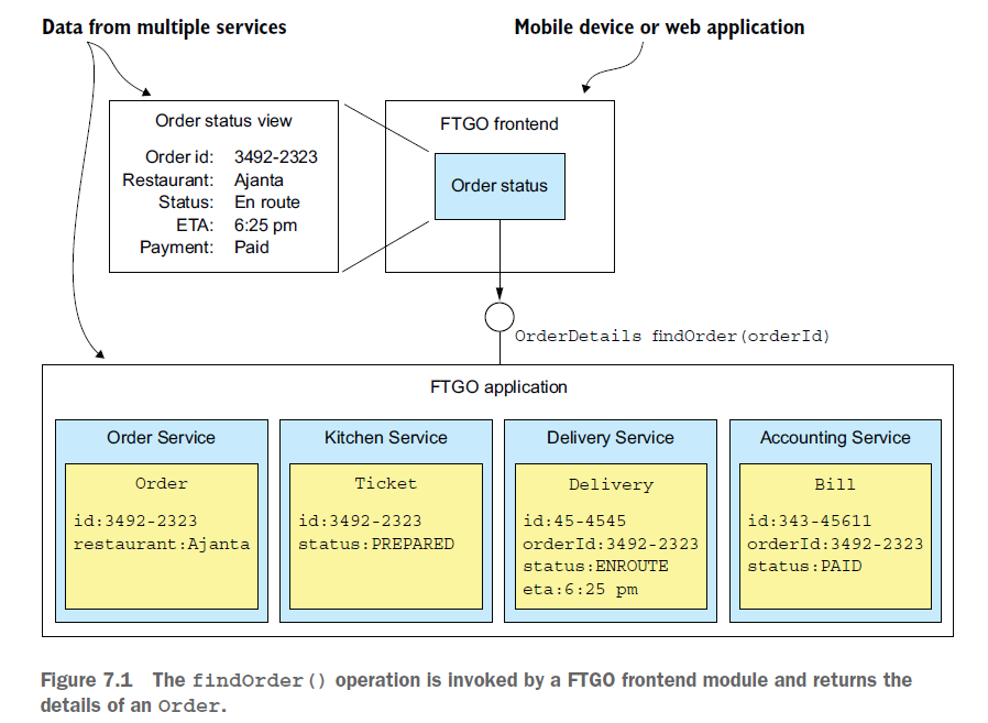 마이크로 서비스에서 쿼리는 API조합패턴과 CQRS 패턴으로 쿼리를 구현한다. 이번장에서는 이 두 API 에 대해 설명 한다.
