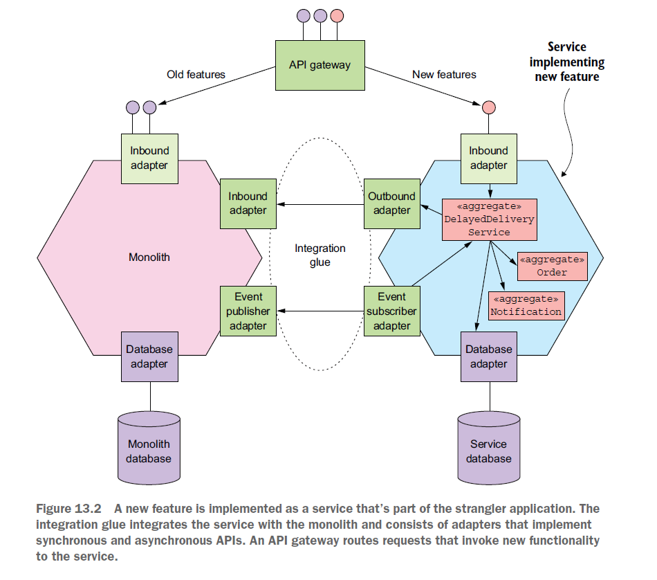 새 서비스와 모놀리스를 통합하는 두개의 요소는 다음과 같다.