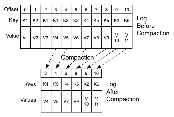 로그 컴팩션은 최종 값만 보관하게 되므로 복구가 빠르고, 저장되는 데이터를 최소화 하여 관리 할 수 있다.